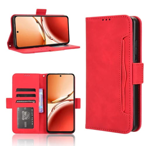 Funda de Piel con Textura de Becerro y Ranuras para Tarjetas para Oppo Reno12 F 5G (Roja)