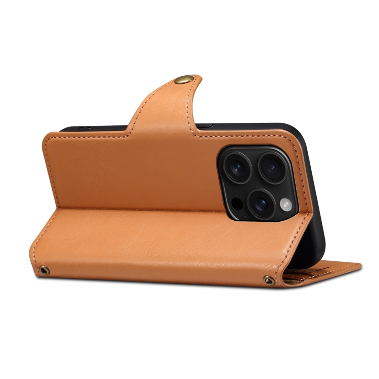 Funda de Cuero Denior para iPhone 16 Pro Estilo Billetera (Caqui)