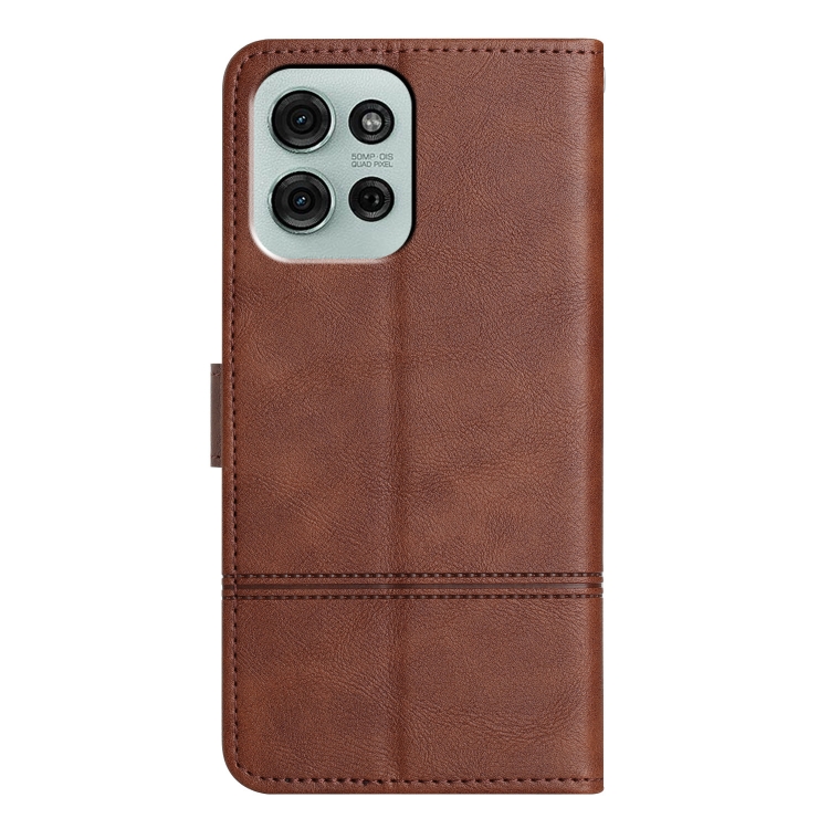 Funda de Cuero con Textura de Piel de Vaca y Costuras para Motorola Moto G75 (Café)