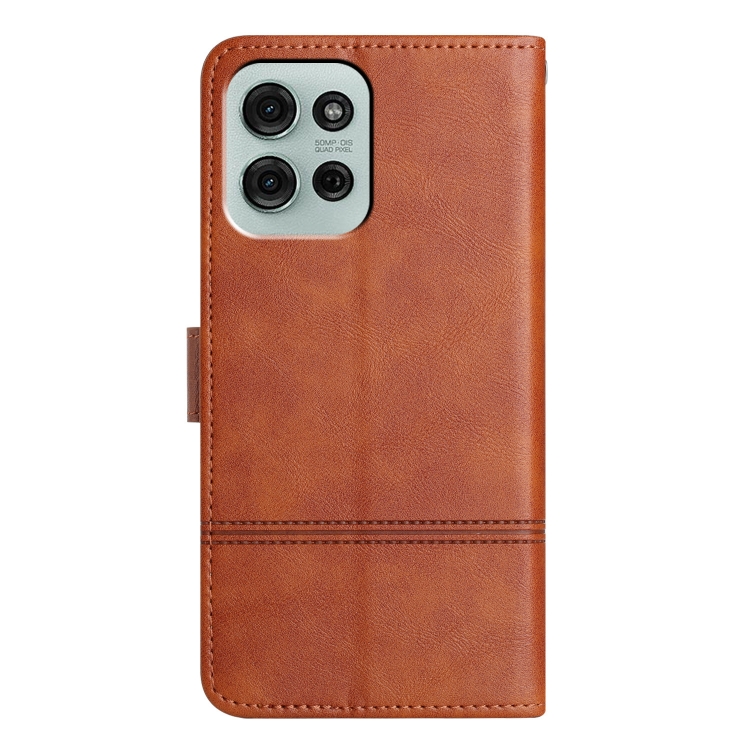 Funda de Cuero con Textura de Piel de Vaca y Costuras para Motorola Moto G75 (Marrón)