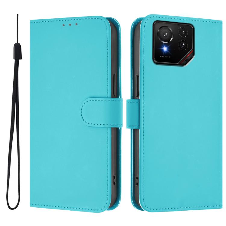 Funda de Cuero con Textura de Piel y Cordón para Asus Rog Phone 9/9 Pro (Azul Lago)