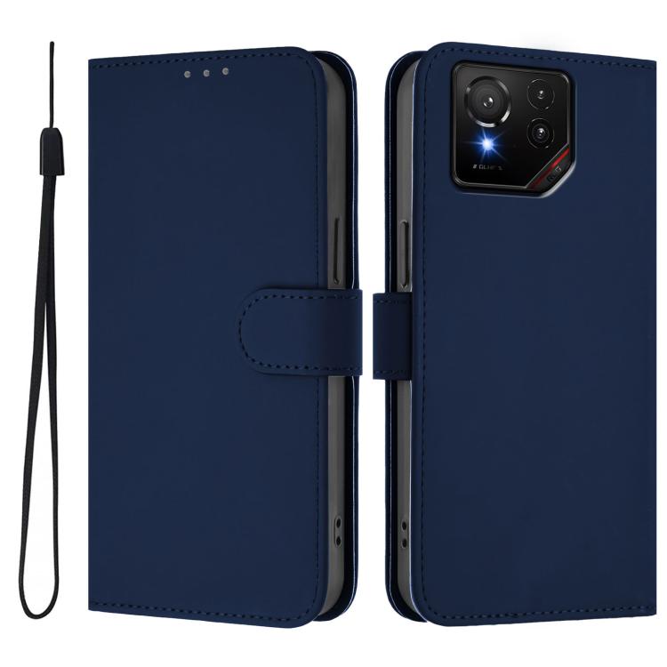 Funda de Cuero con Textura de Piel y Cordón para Asus Rog Phone 9/9 Pro (Azul Marino)