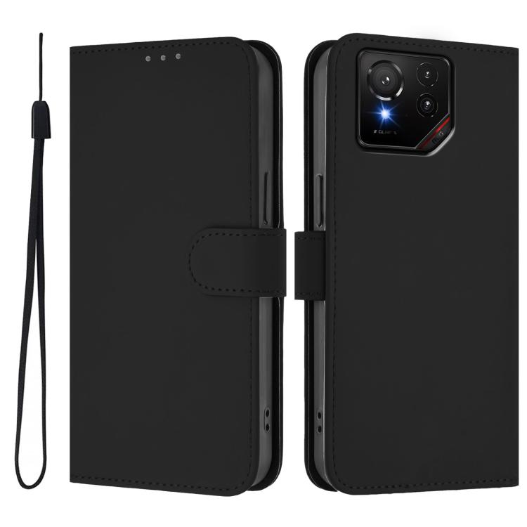 Funda de Cuero con Textura de Piel y Cordón para Asus Rog Phone 9/9 Pro (Negro)