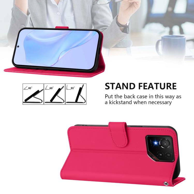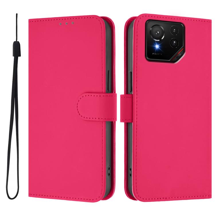 Funda de Cuero con Textura de Piel y Cordón para Asus Rog Phone 9/9 Pro (Rojo Rosa)