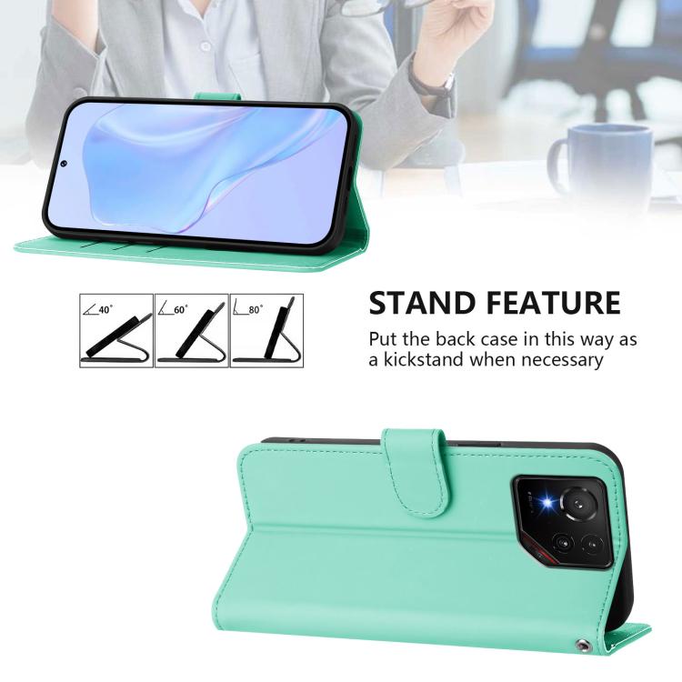 Funda de Cuero con Textura de Piel y Cordón para Asus Rog Phone 9/9 Pro (Verde Menta)