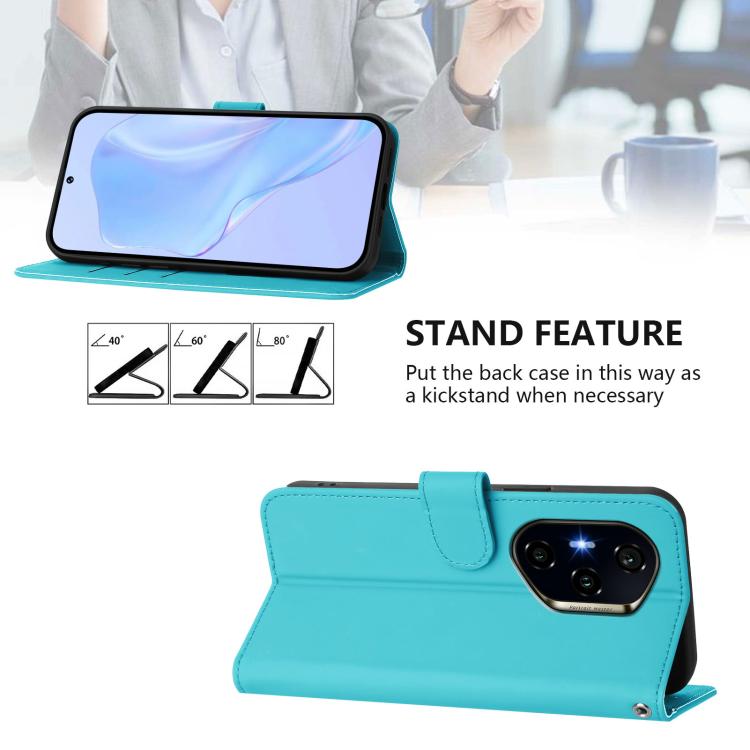 Funda de Cuero con Textura de Piel y Cordón para Honor 400 (Azul Lago)