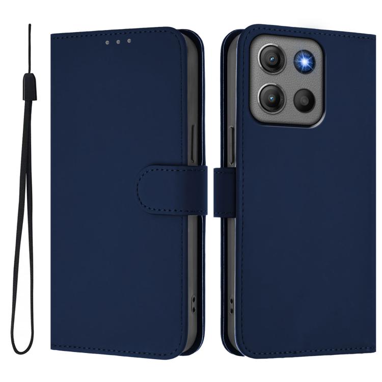 Funda de cuero con textura de piel y cordón para Motorola Moto G15 Power (azul marino)