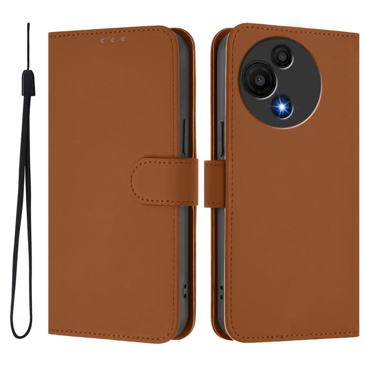 Funda de cuero con textura de piel y cordón para TCL 605/60 SE (marrón)