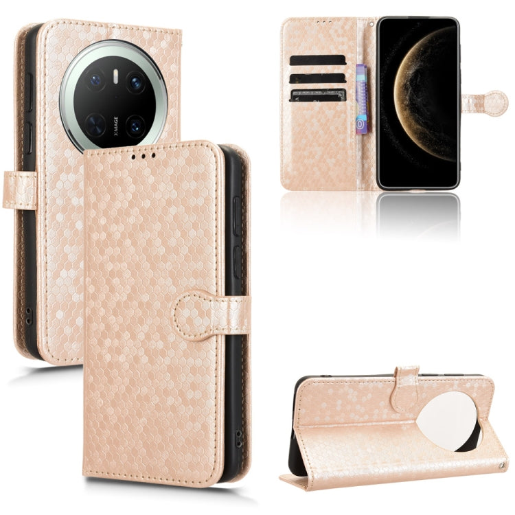 Funda de Cuero Huawei Mate 70 Textura de Puntos Panal (Dorada)