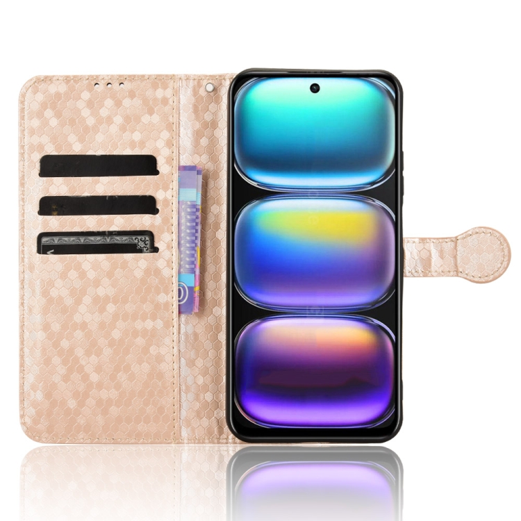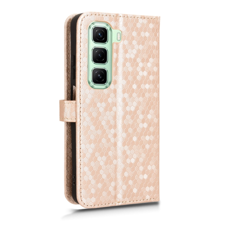 Funda de Cuero con Textura de Puntos Panal para Infinix Hot 50 5G (Dorada)