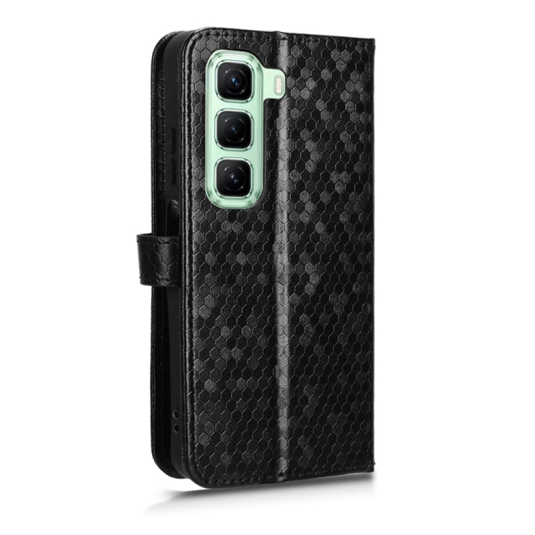 Funda de Cuero con Textura de Puntos Panal para Infinix Hot 50 5G (Negra)