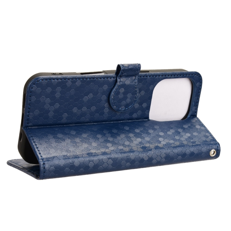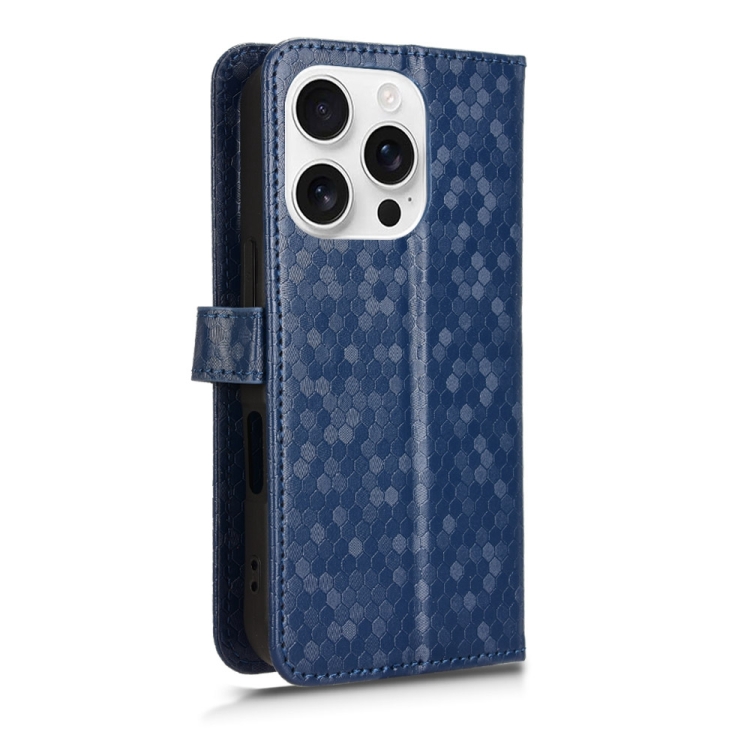 Funda de Cuero para iPhone 16 Pro Max Textura de Puntos en Forma de Panal (Azul)