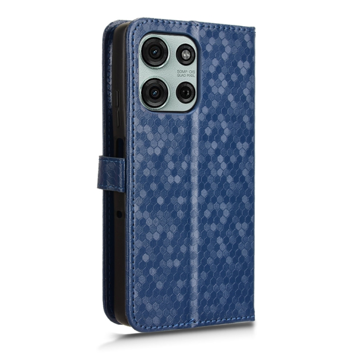 Funda de Cuero para Motorola Moto G75 5G con Textura de Puntos en Forma de Panal (Azul)