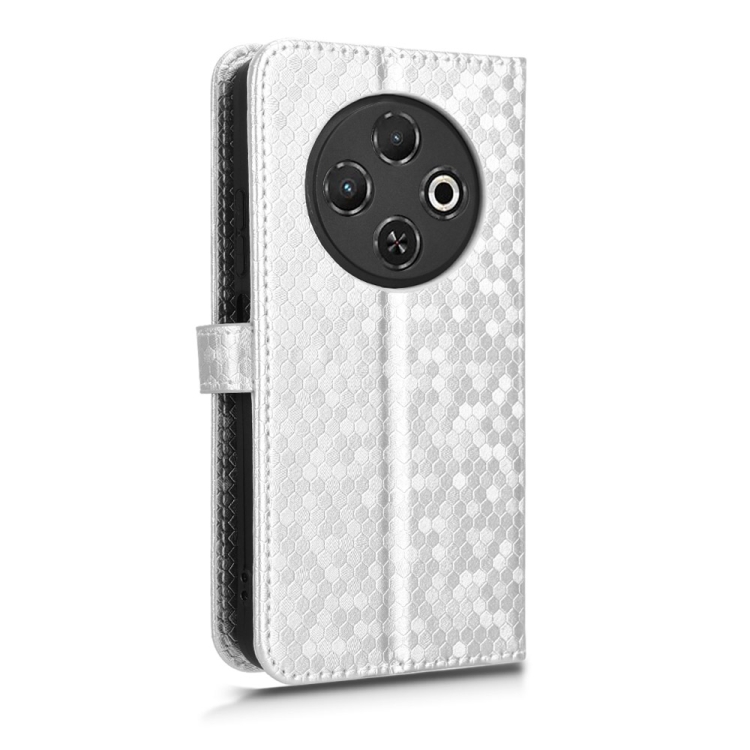 Funda de Cuero para Tecno Spark 30C 4G con Textura de Puntos Panal (Plateada)