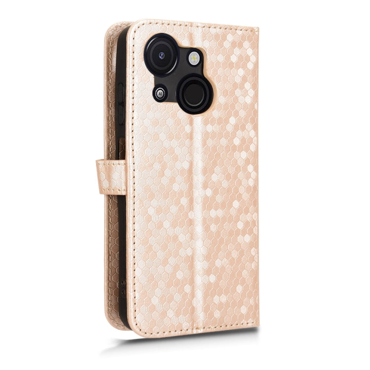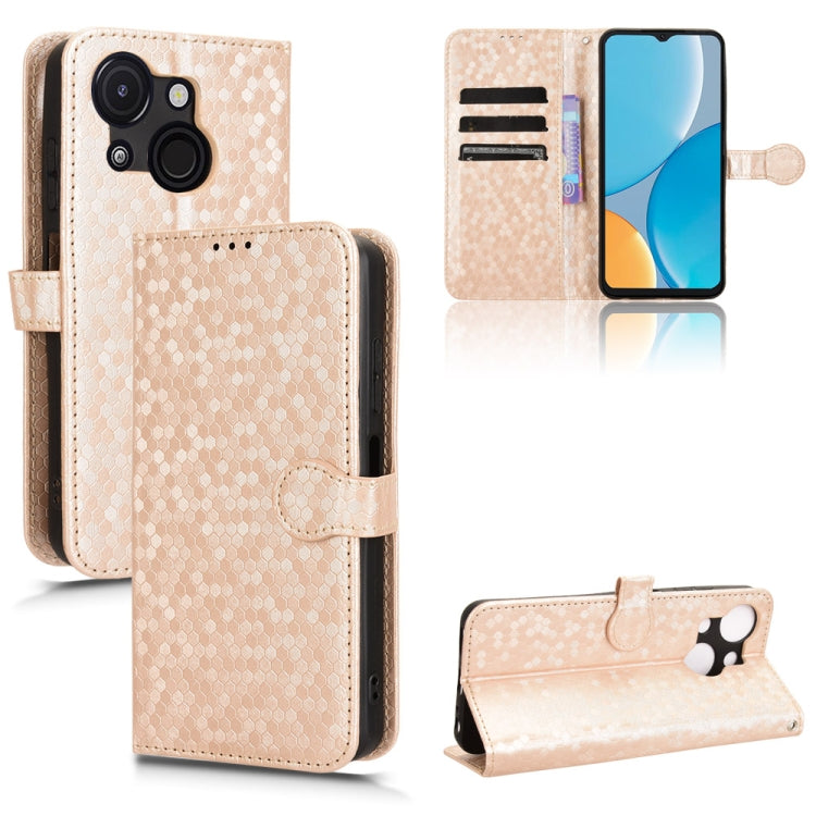Funda de Cuero con Textura de Puntos Panal para Teléfono Itel A50C (Dorada)