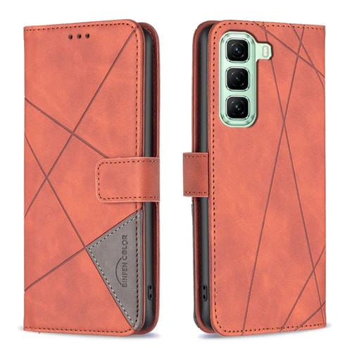 Funda de Cuero con Textura de Rombos y Hebilla Magnética para Infinix Hot 50 5G (Marrón)