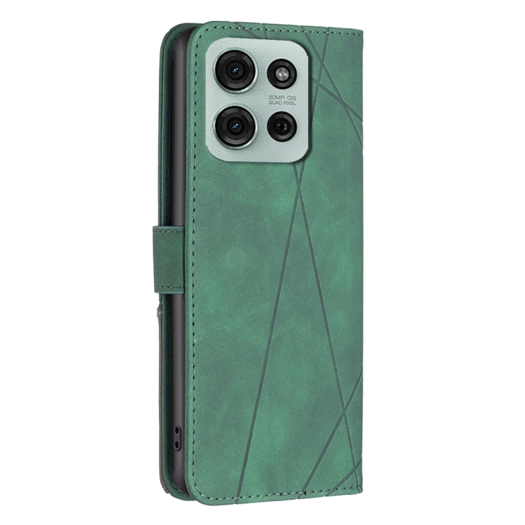 Funda de Cuero para Motorola Moto G75 5G con Textura de Rombos y Hebilla Magnética (Verde)