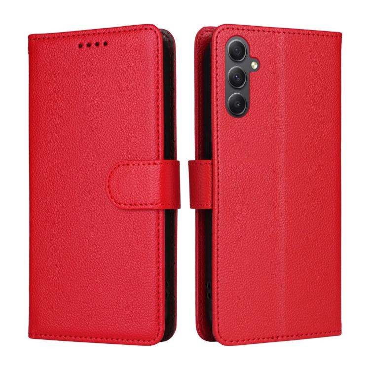 Funda de cuero con textura Litchi para Samsung Galaxy A34 5G, con bloqueo RFID y capacidad para 3 tarjetas (roja)
