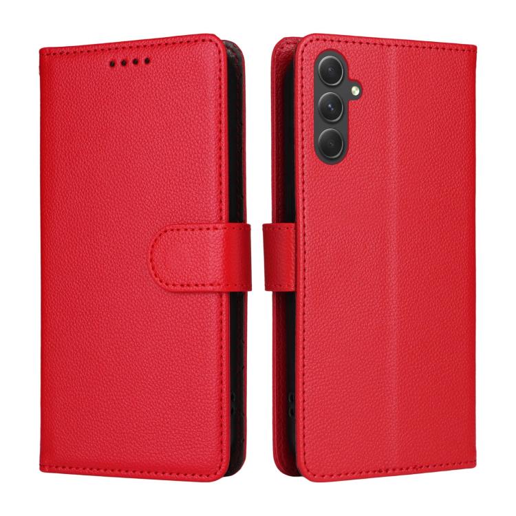 Funda de cuero con textura Litchi para Samsung Galaxy A54 5G, con bloqueo RFID y capacidad para 3 tarjetas (roja)