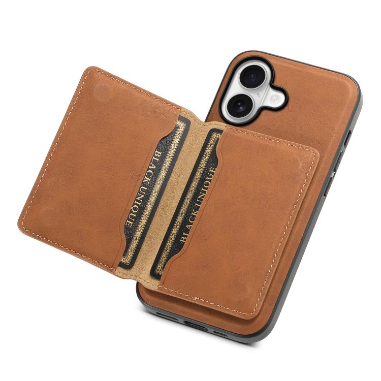 Funda de cuero con textura retro Denior D13 para iPhone 17 (marrón)