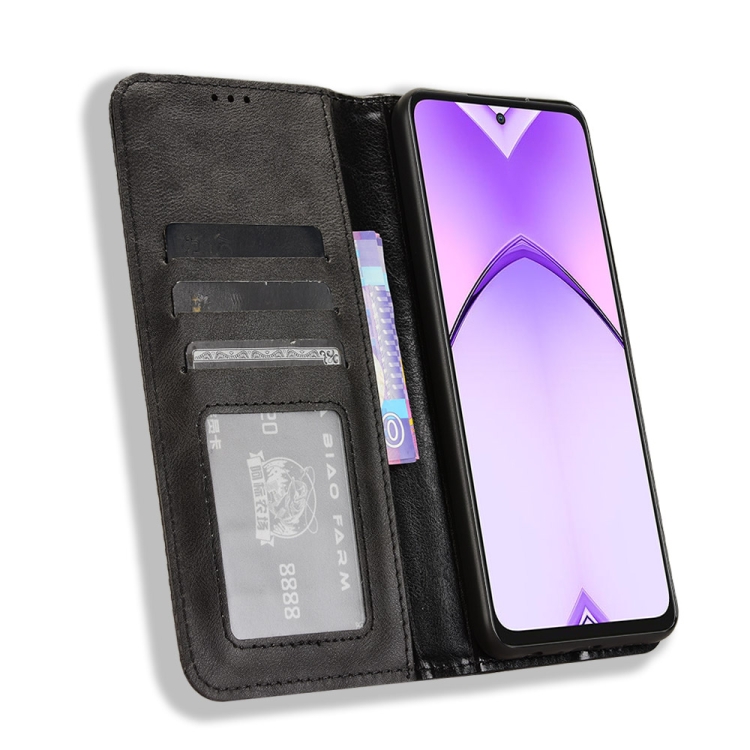 Funda de Cuero con Textura Retro y Hebilla Magnética Global para Oppo A3 Pro 5G (Negro)