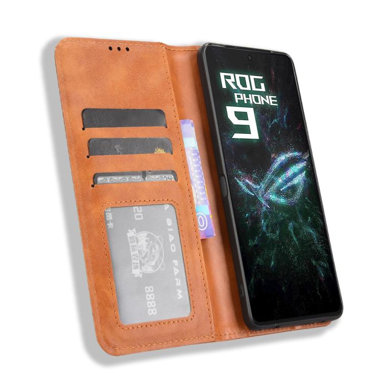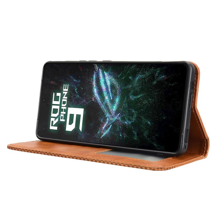 Funda de Cuero Textura Retro con Hebilla Magnética para Asus Rog Phone 9/9 Pro (Marrón)
