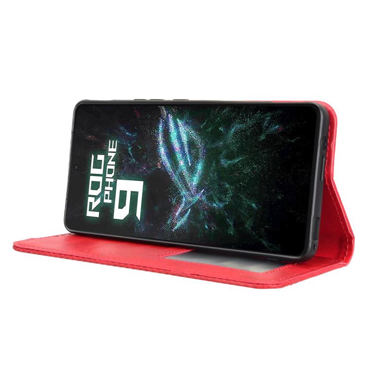 Funda de Cuero con Textura Retro y Hebilla Magnética para Asus Rog Phone 9/9 Pro (Roja)