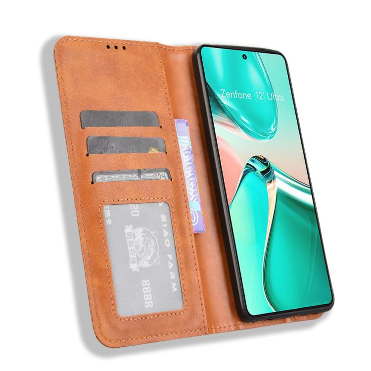 Funda de Cuero Asus Zenfone 12 Ultra con Textura Retro y Hebilla Magnética (Marrón)
