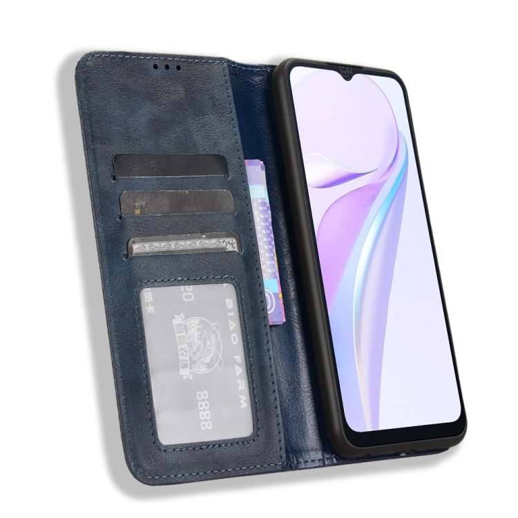 Funda de Cuero BlackView Wave 6C con Textura Retro y Hebilla Magnética (Azul)
