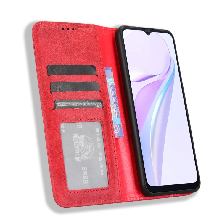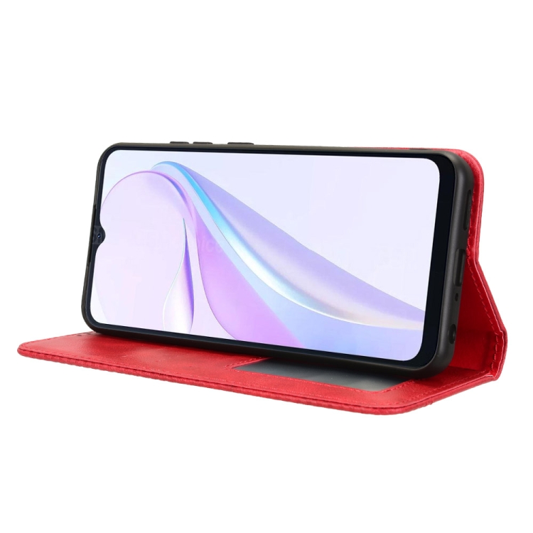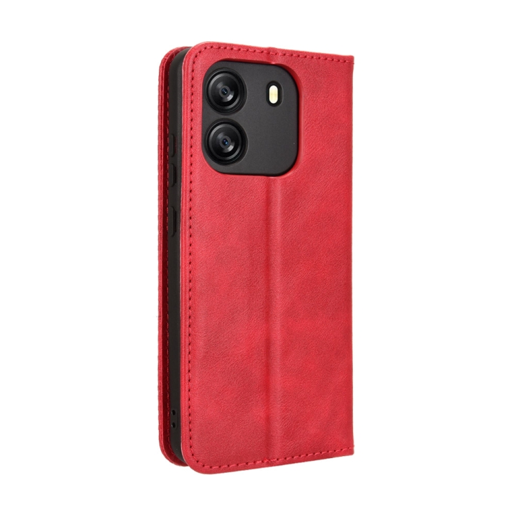 Funda de Cuero BlackView Wave 6C con Textura Retro y Hebilla Magnética (Rojo)