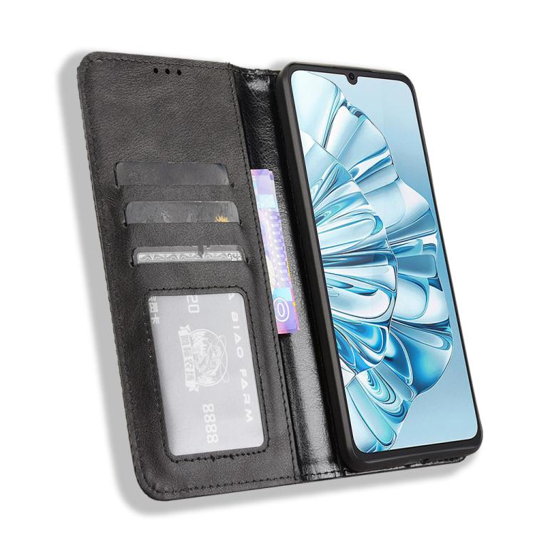 Funda de Cuero para Cubot A20 con Textura Retro y Hebilla Magnética (Negra)