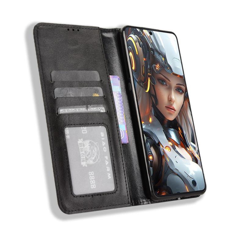 Funda de Cuero para Cubot Max 5 con Textura Retro y Hebilla Magnética (Negra)