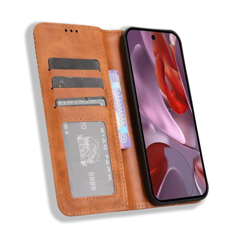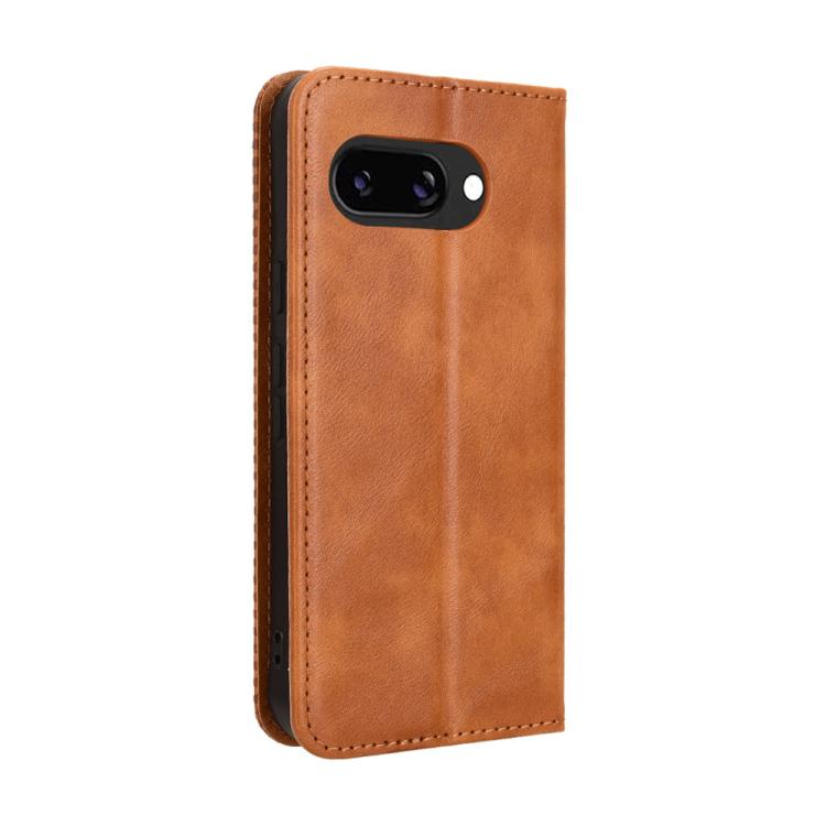 Funda de Cuero para Google Pixel 9A con Textura Retro y Hebilla Magnética (Marrón)