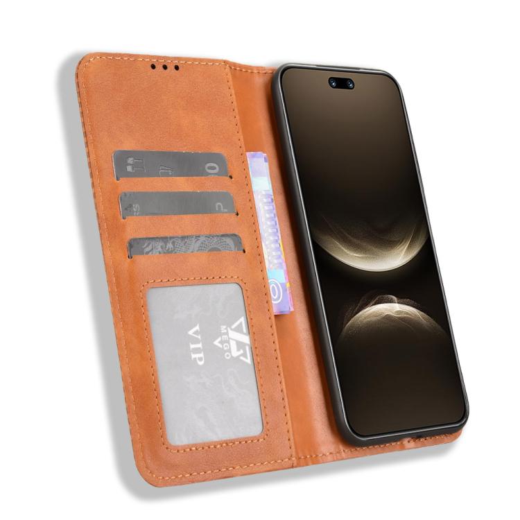 Funda de cuero con textura retro y hebilla magnética para Huawei Nova 14 5G (marrón)