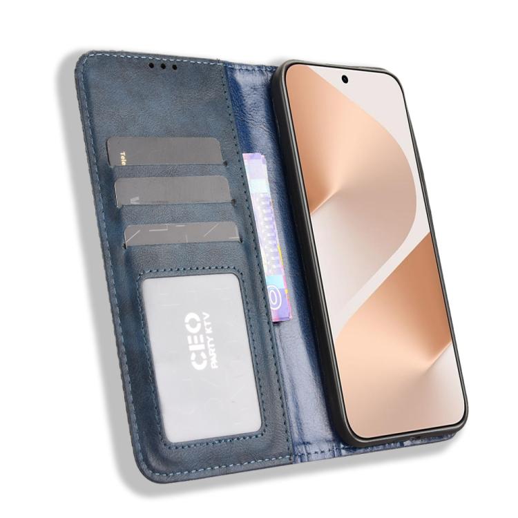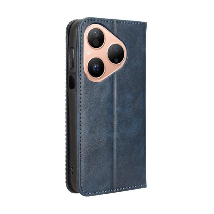 Funda de cuero con textura retro y hebilla magnética para Huawei Pura 80 5G (azul)