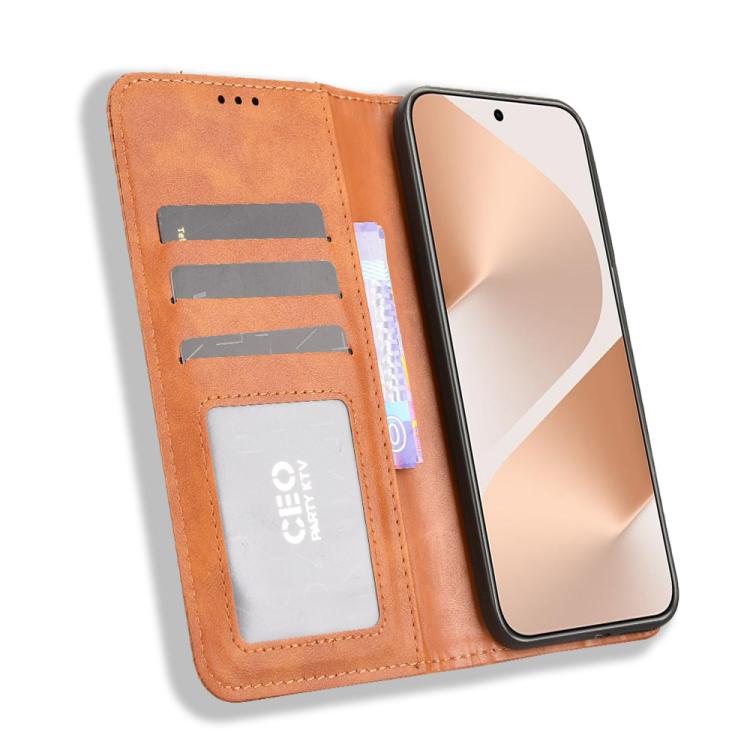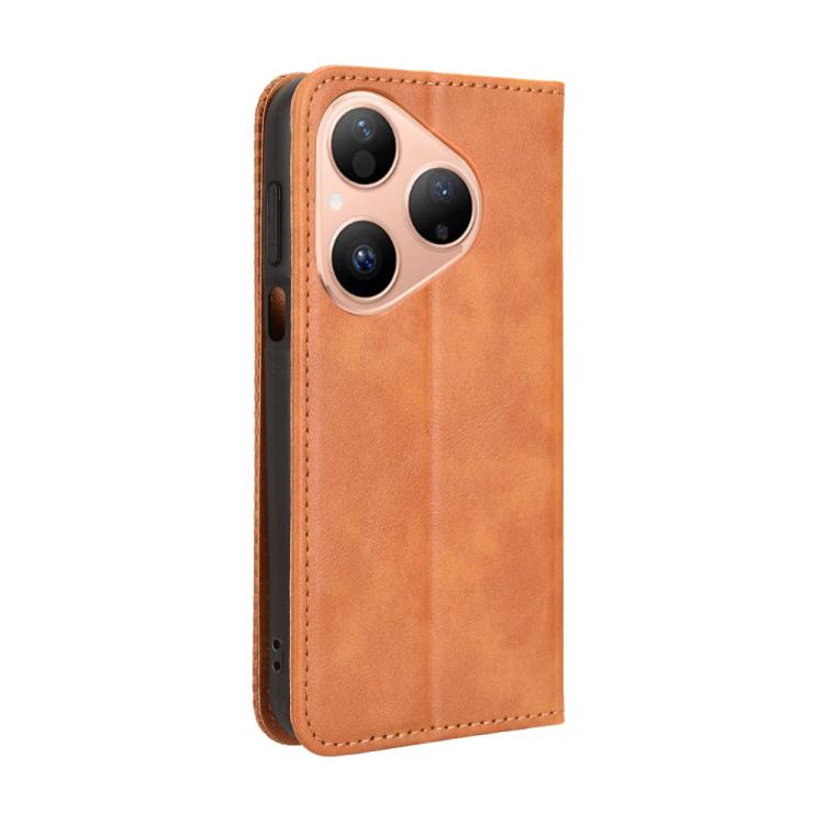 Funda de cuero con textura retro y hebilla magnética para Huawei Pura 80 5G (marrón)