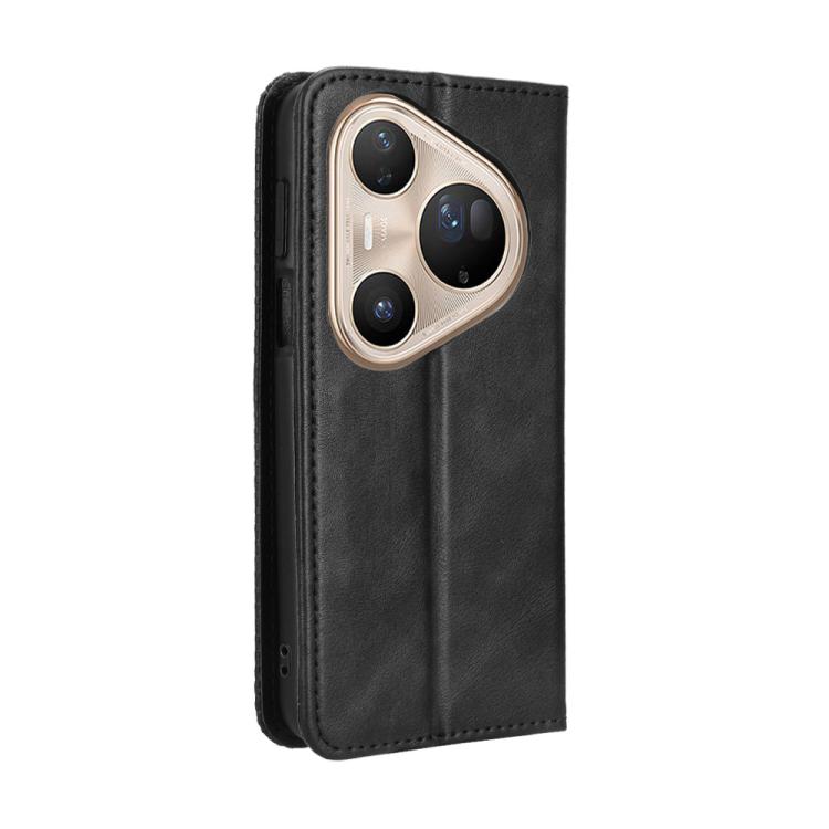 Funda de cuero con textura retro y hebilla magnética para Huawei Pura 80 Ultra 5G (negra)