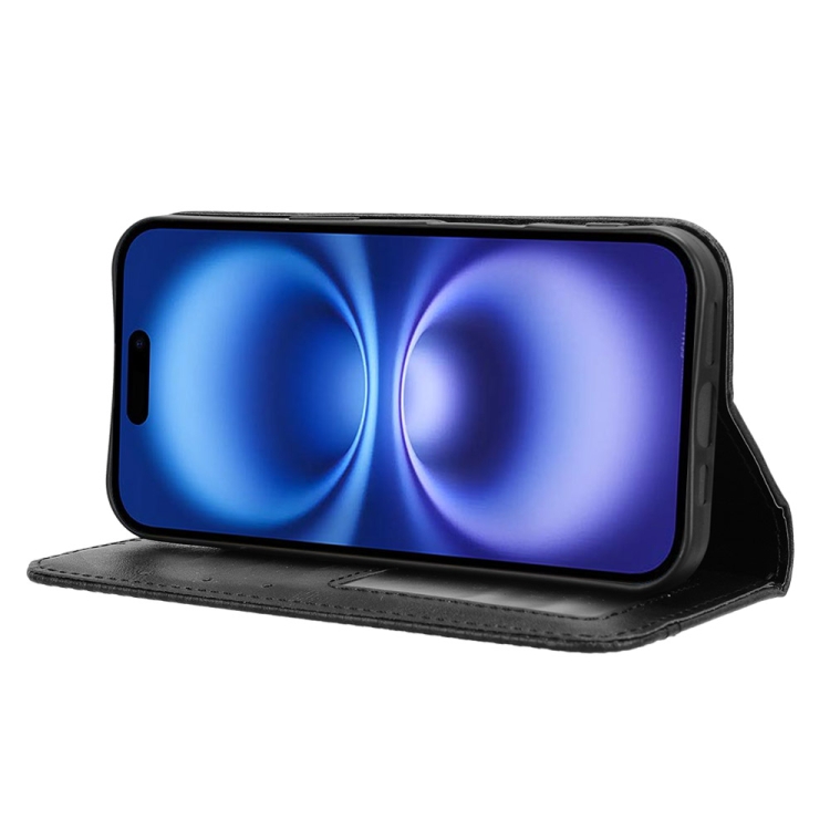 Funda de Cuero iPhone 16 Textura Retro Hebilla Magnética (Negra)