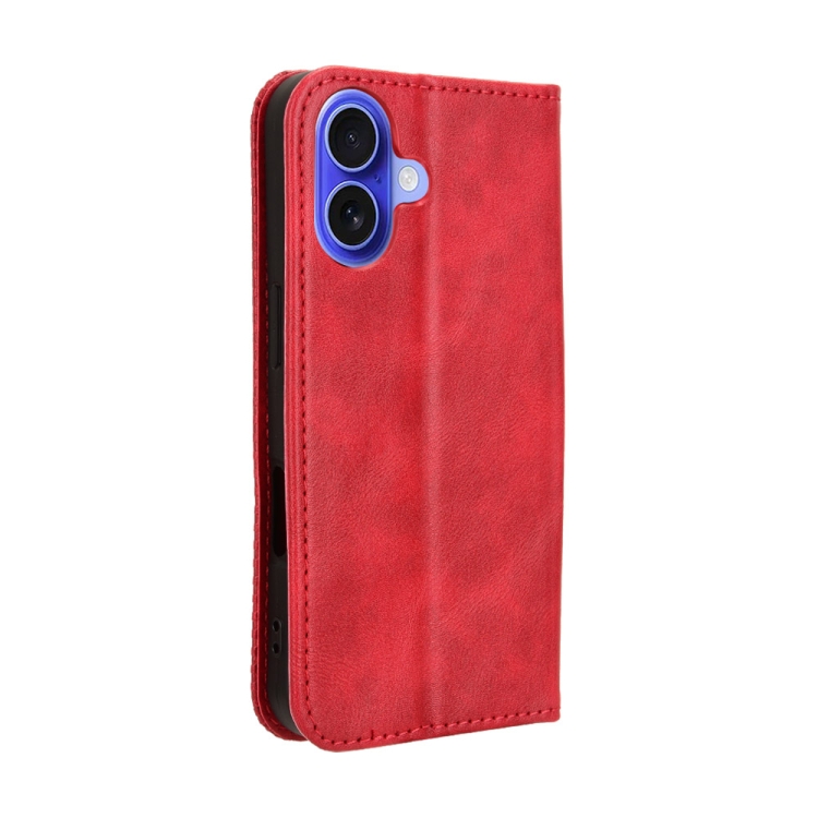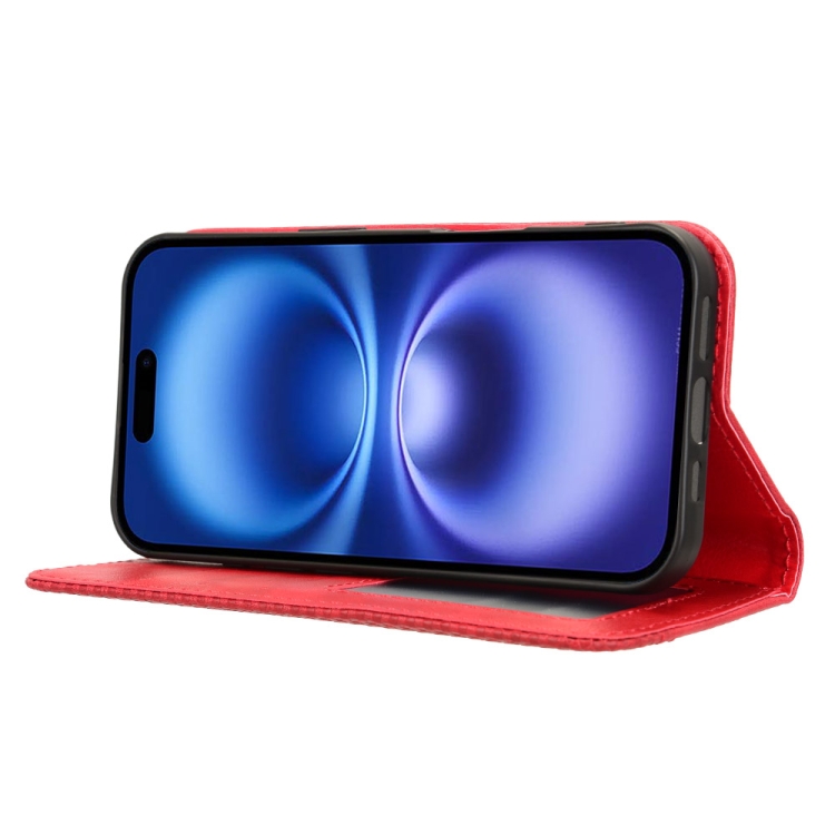 Funda de Cuero iPhone 16 Textura Retro Hebilla Magnética (Roja)