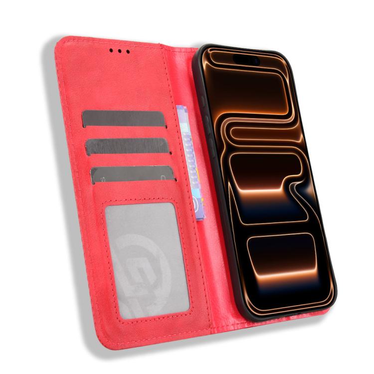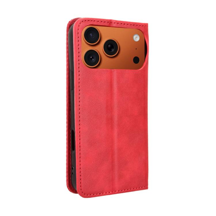 Funda de cuero con textura retro y hebilla magnética para iPhone 17 Pro Max (roja)
