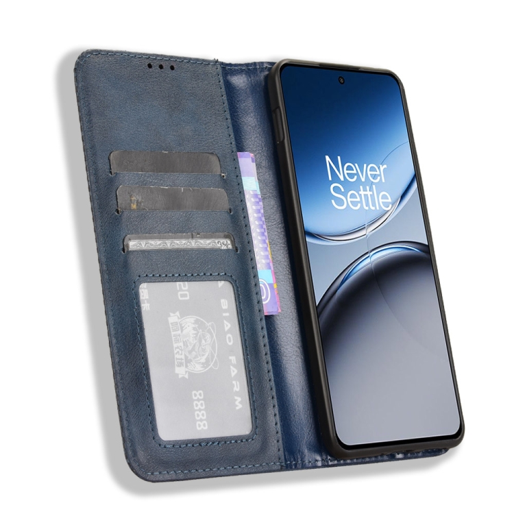 Funda de Cuero OnePlus Nord 4 5G con Textura Retro y Hebilla Magnética (Azul)
