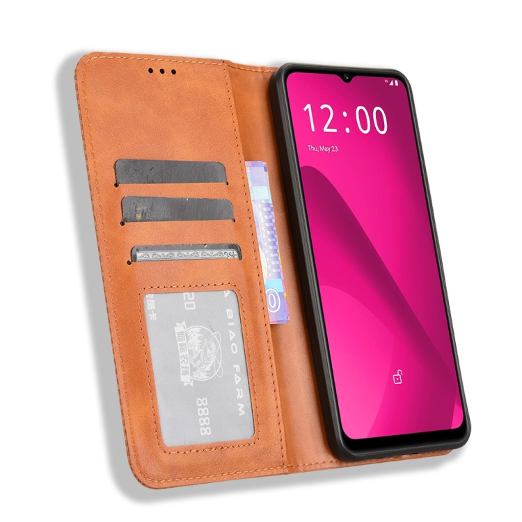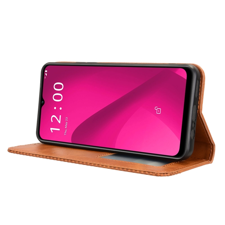 Funda de Cuero Textura Retro con Hebilla Magnética para T-Mobile Revvl 7 5G (Marrón)