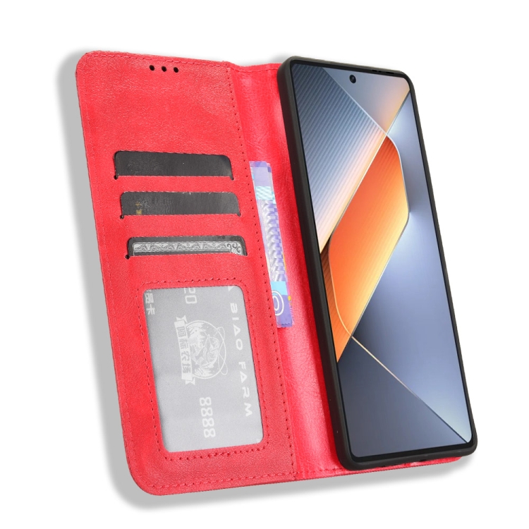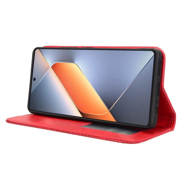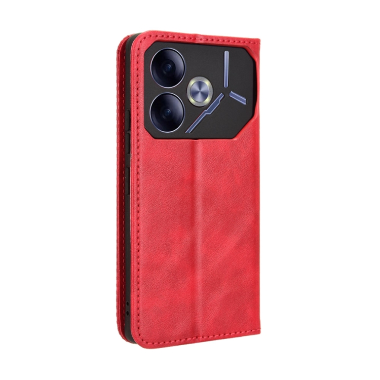 Funda de Cuero para Tecno Pova 6 4G con Textura Retro y Hebilla Magnética (Rojo)