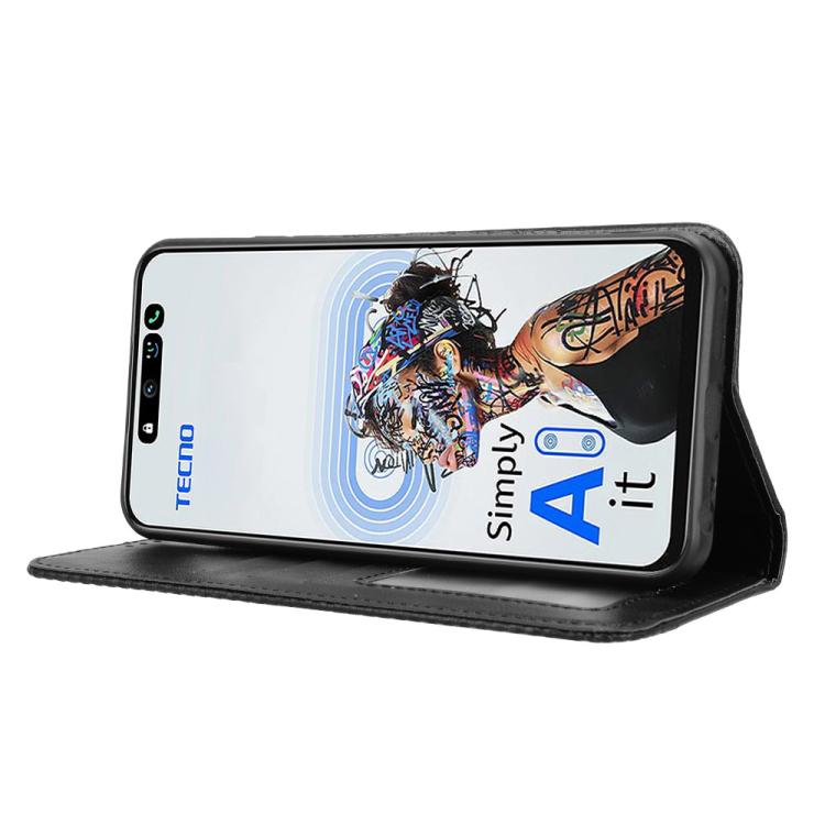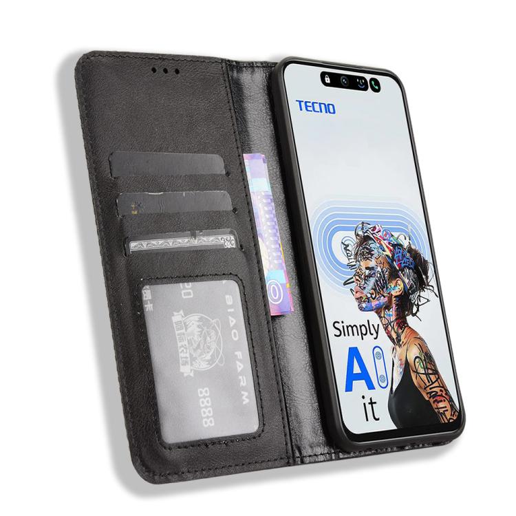 Funda Cuero Textura Retro Hebilla Magnética para Tecno Pova 6 Neo 5G Spark 30 5G (Negro)