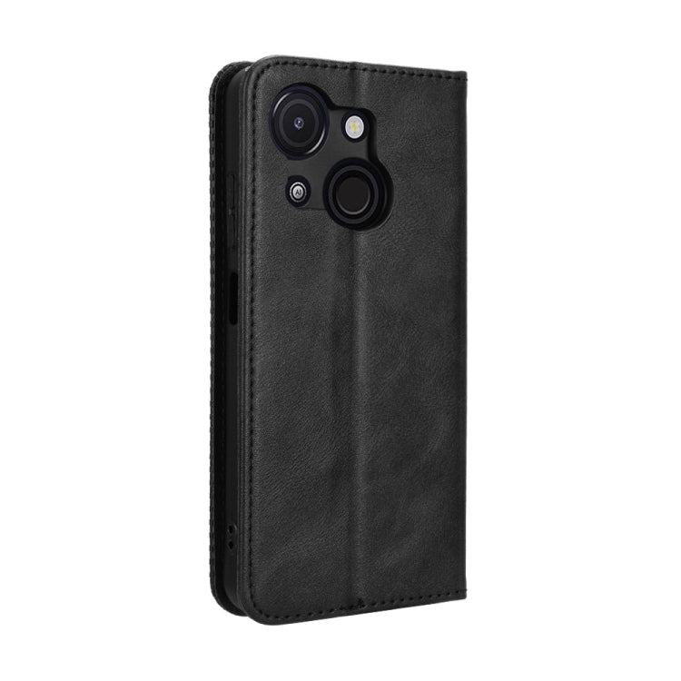 Funda de Cuero Itel A50C Textura Retro con Hebilla Magnética (Negro)