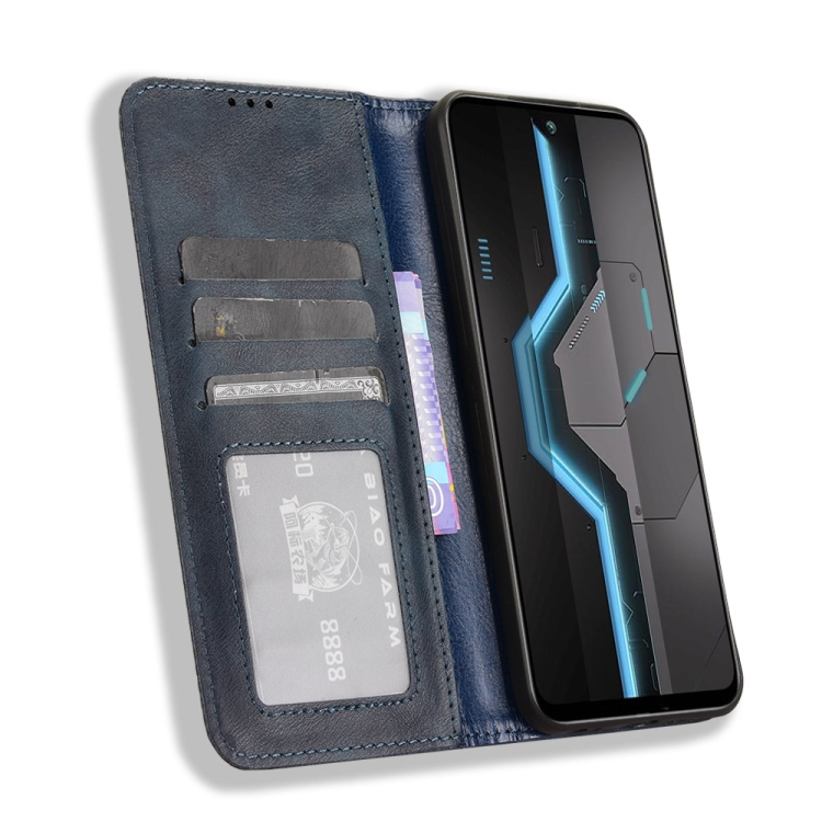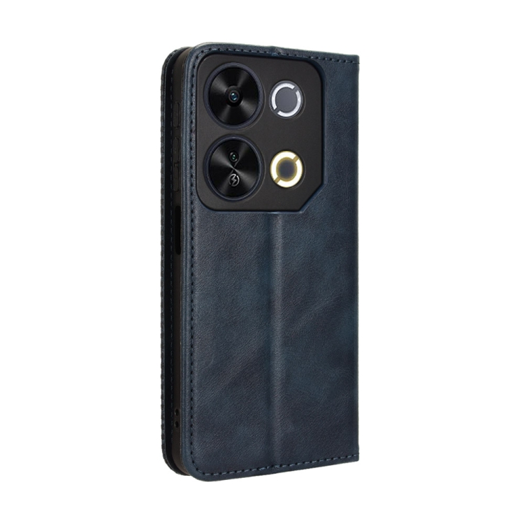 Funda de Cuero Itel P65 4G con Textura Retro y Hebilla Magnética (Azul)