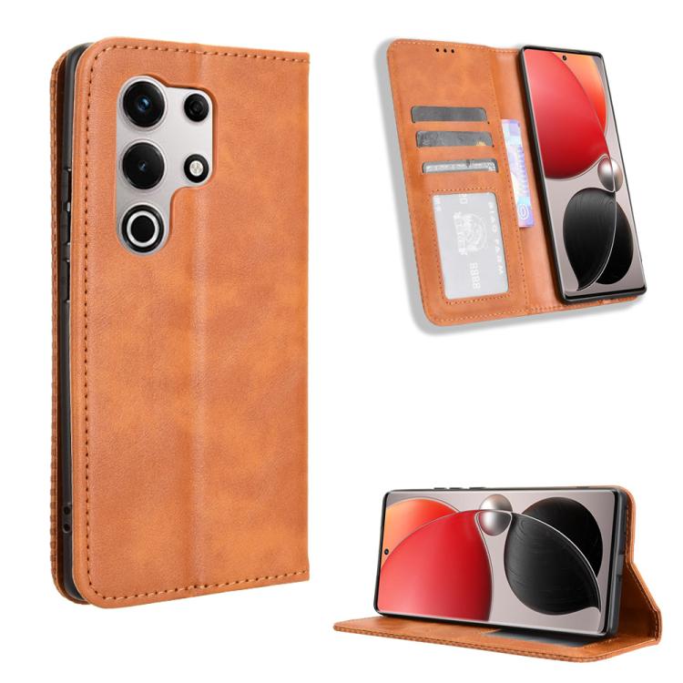 Funda de Cuero Itel S25 Ultra 4G con Textura Retro y Hebilla Magnética (Marrón)