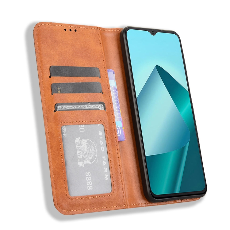Funda de Cuero Wiko T20 Textura Retro Hebilla Magnética (Marrón)