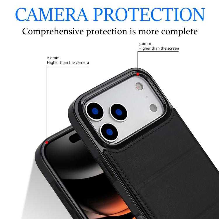 Funda de cuero con tres pliegues y ranura para tarjetas para iPhone 17 Pro Max (negra)
