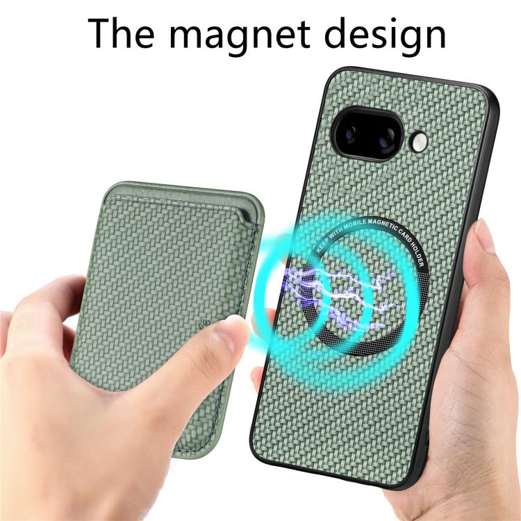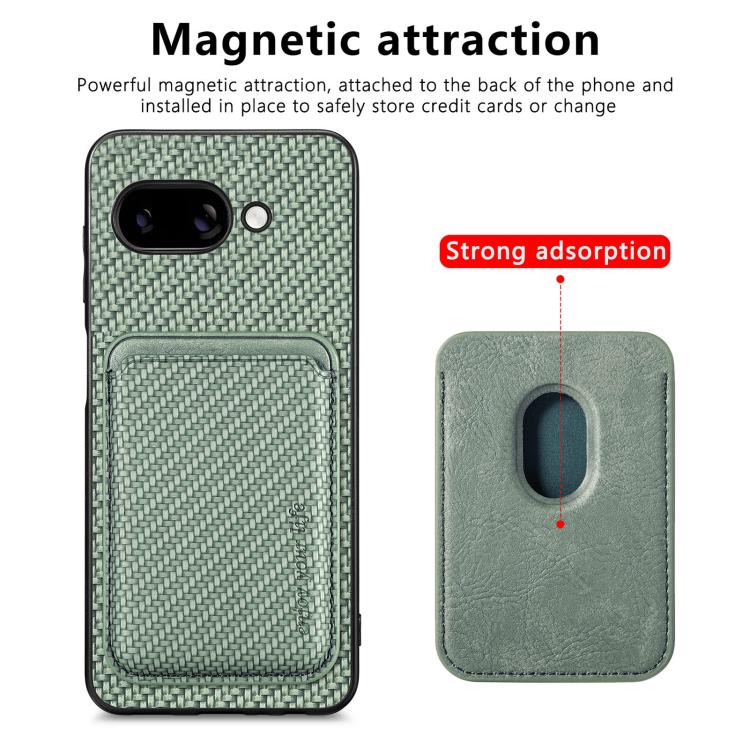 Funda Cuero Fibra de Carbono con Tarjetero Magsafe para Google Pixel 9A (Verde)